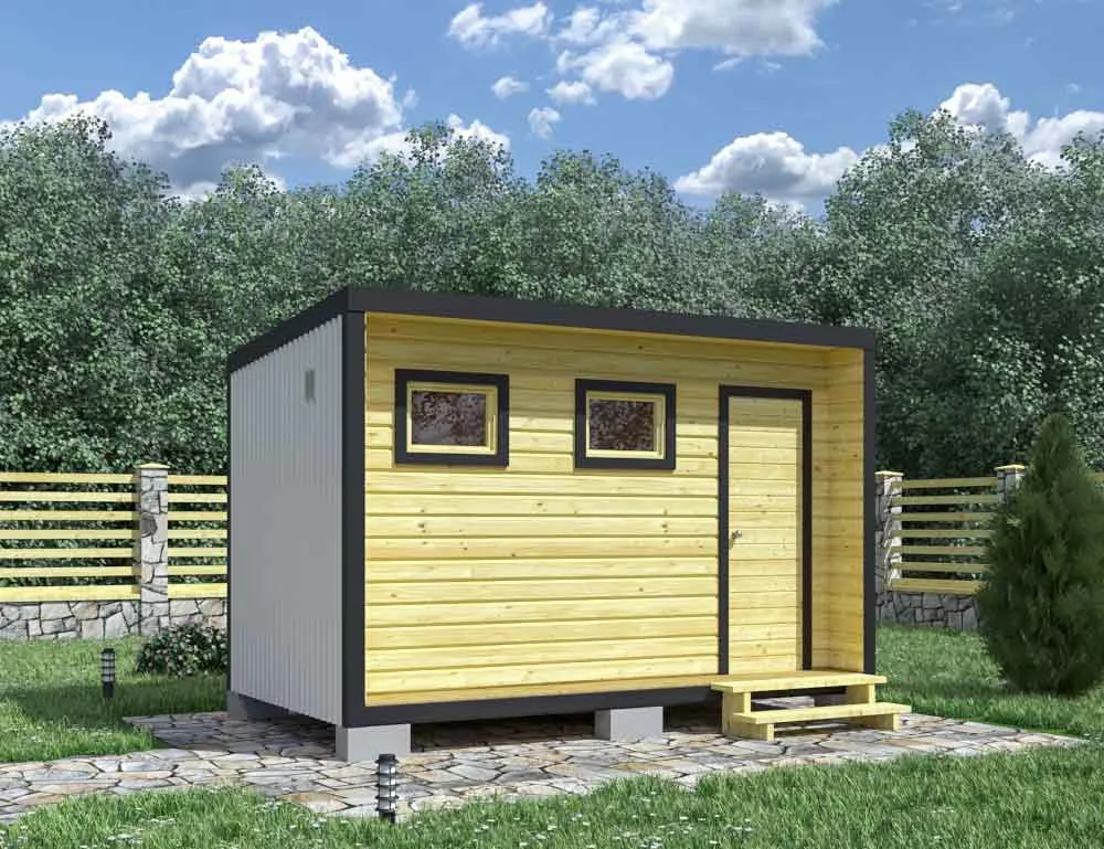 ![]() | Бытовка для дачи в стиле хай-тек с цветным профлистом 3х2.4 | 3х2,4 | 7,2 | ![]() | ДВП-Оргалит: 124 000 | Вагонка дерев.: 132 000 | OSB: 130 500 |