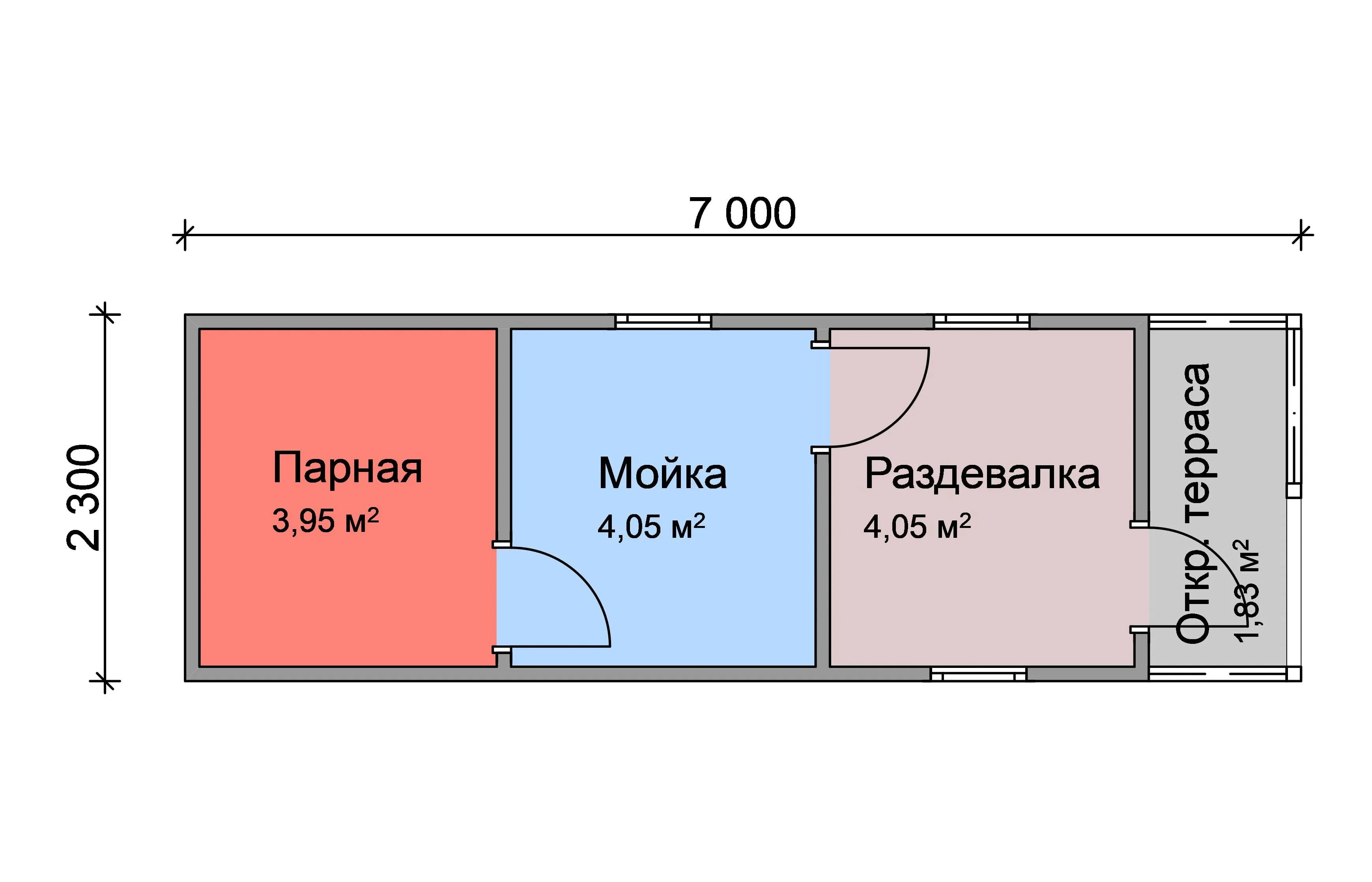 ![]() | Перевозная баня из бруса 7х2,3 с крыльцом | 7x2.3 | 16.1 | ![]() | Брус 90х140: 417 000 | Брус 140х140: 491 000 | |